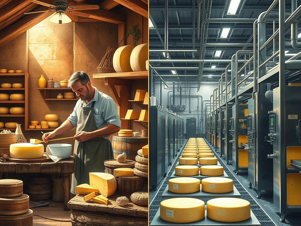 Le fromage est un pilier de la gastronomie, apprécié pour sa diversité de saveurs et de textures. Derrière chaque meule ou portion se cache un processus de fabrication qui peut varier considérablement. D’un côté, le savoir-faire artisanal, fruit de traditions anciennes. De l’autre, des procédés industriels optimisés pour répondre à une demande massive. Quels sont les éléments qui différencient ces deux approches ? Et comment ce choix impacte-t-il la qualité, le goût et l’environnement ?